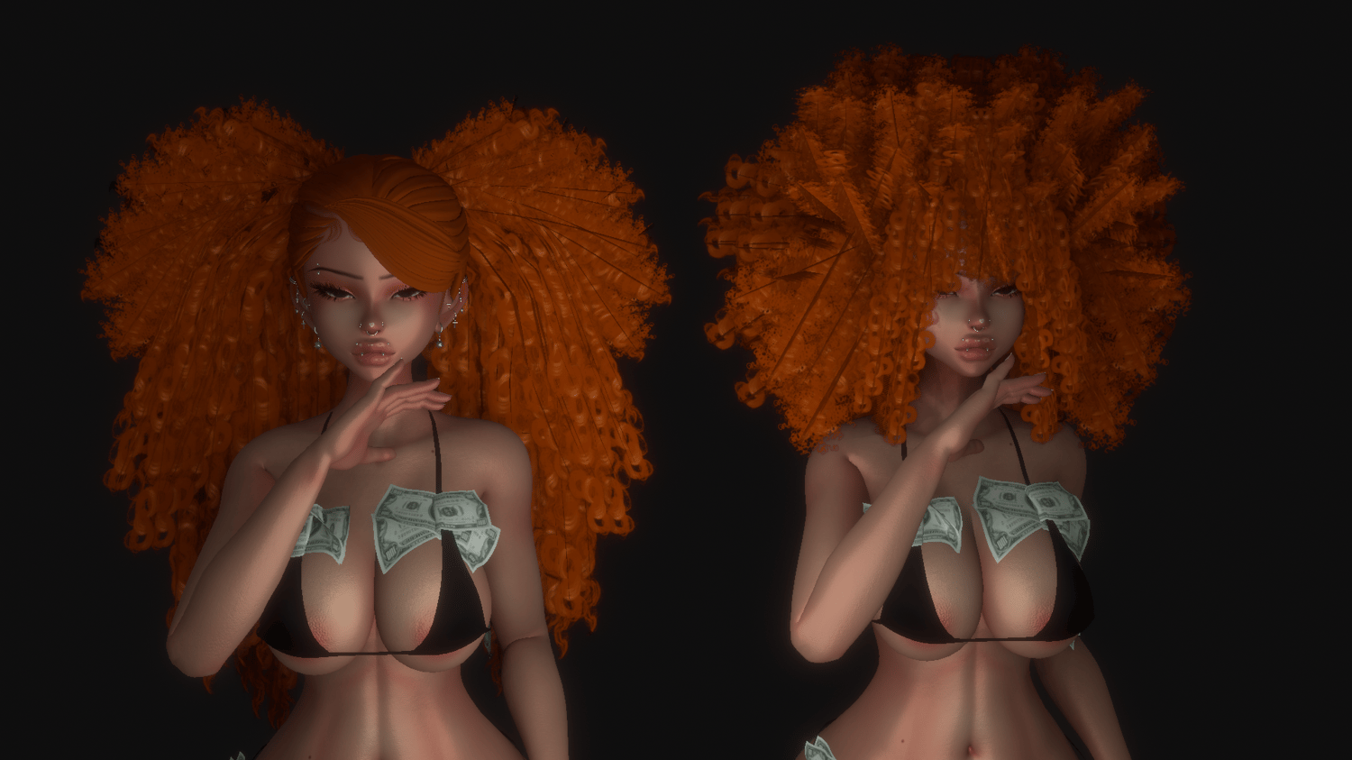 BASE SCALP + SIDE SWOOP BANG OF THE PIGTAILS USES CICI'S FREE TEXTURES.