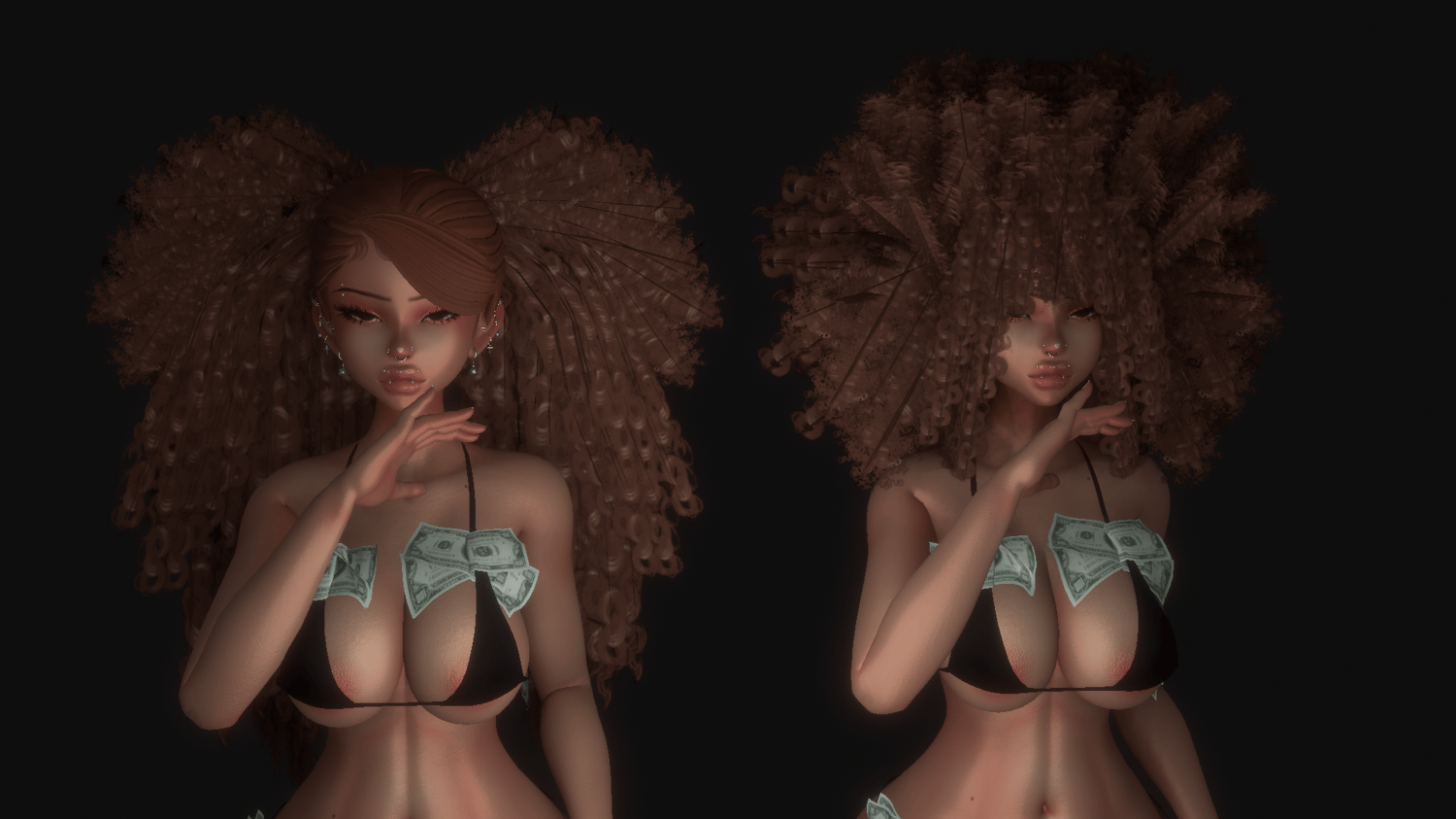 Some actual POC curls, made completely from scratch. THIS IS A 2D HAIR NOT A 3D HAIR. THERES A PIC OF WHAT IT LOOKS LIKE WITHOUT TEXTURES IF YOU SCROLL THROUGH. THIS CAN BE QUEST COMPATIBLE IF YOU HAVE UNITY KNOWLEDGE.