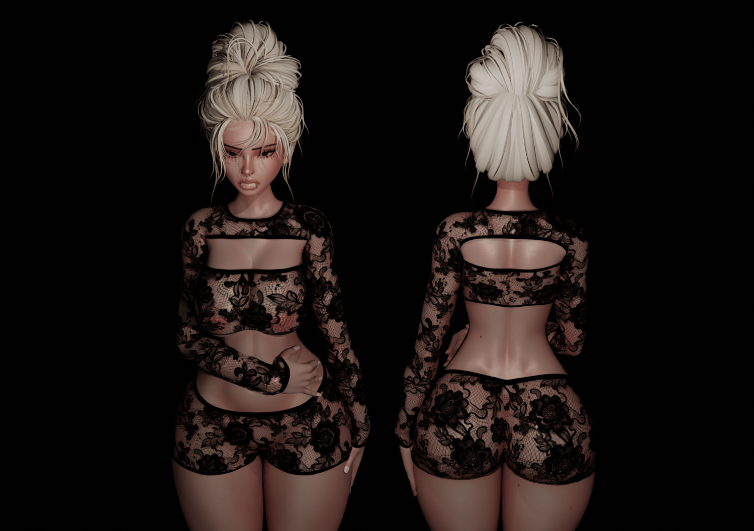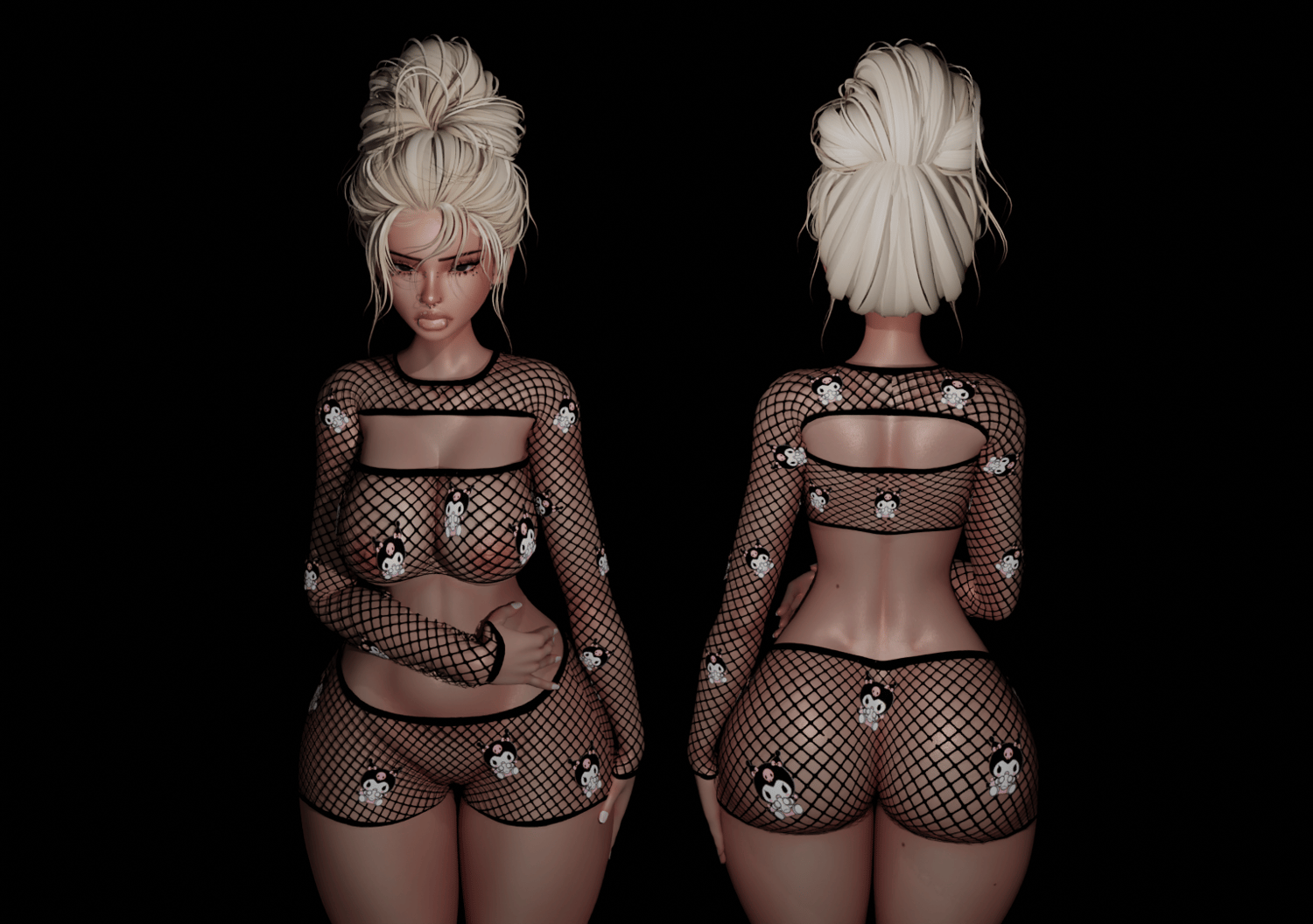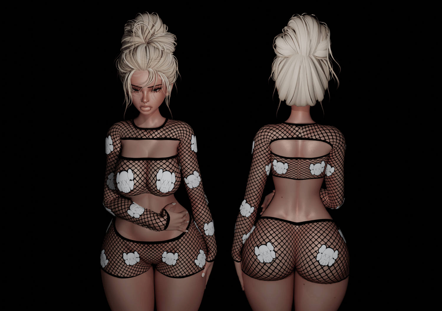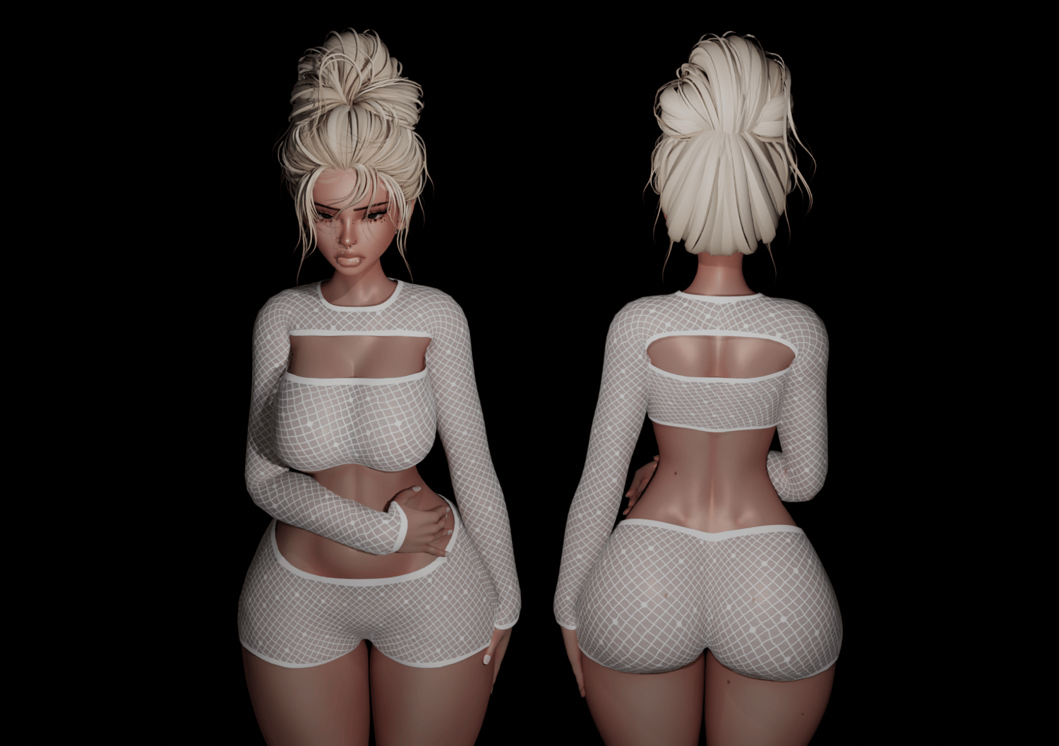 - 1 FBX with 3 pieces of clothing. ( Fishnet Sleeve Top, Fishnet Tube Top, Fishnet Shorts )
